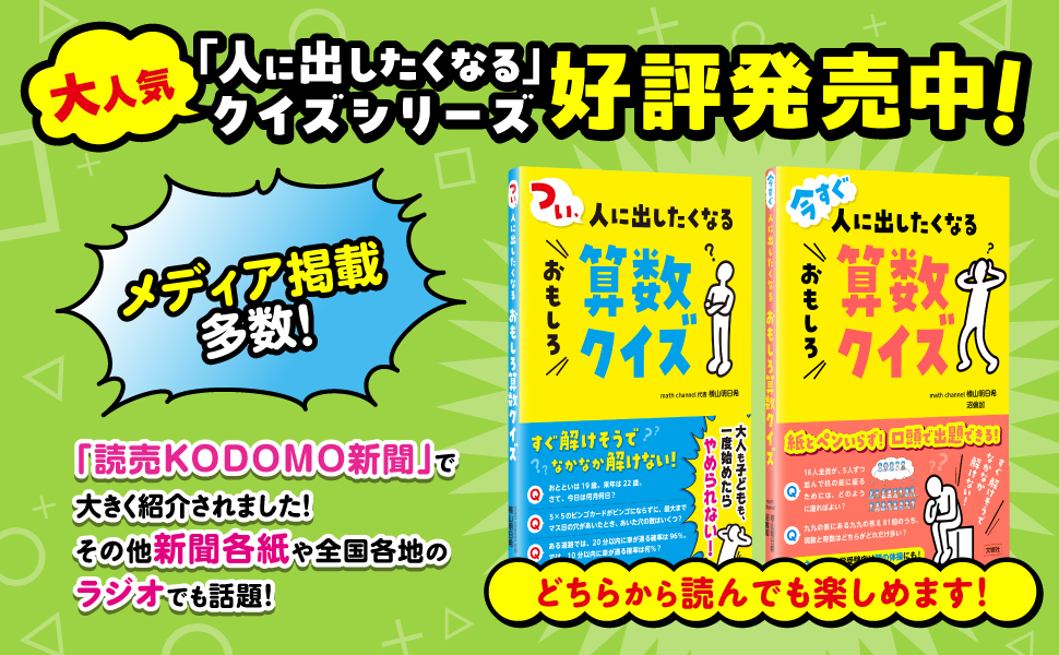 【好評発売中!】算数クイズをまとめた本『つい、人に出したくなるおもしろ算数クイズ』『今すぐ人に出したくなるおもしろ算数クイズ』(文響社)