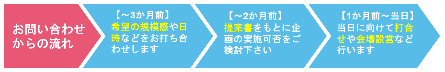 商業施設でイベント企画担当の方や、代理店の方は気軽にお問い合わせ下さい。